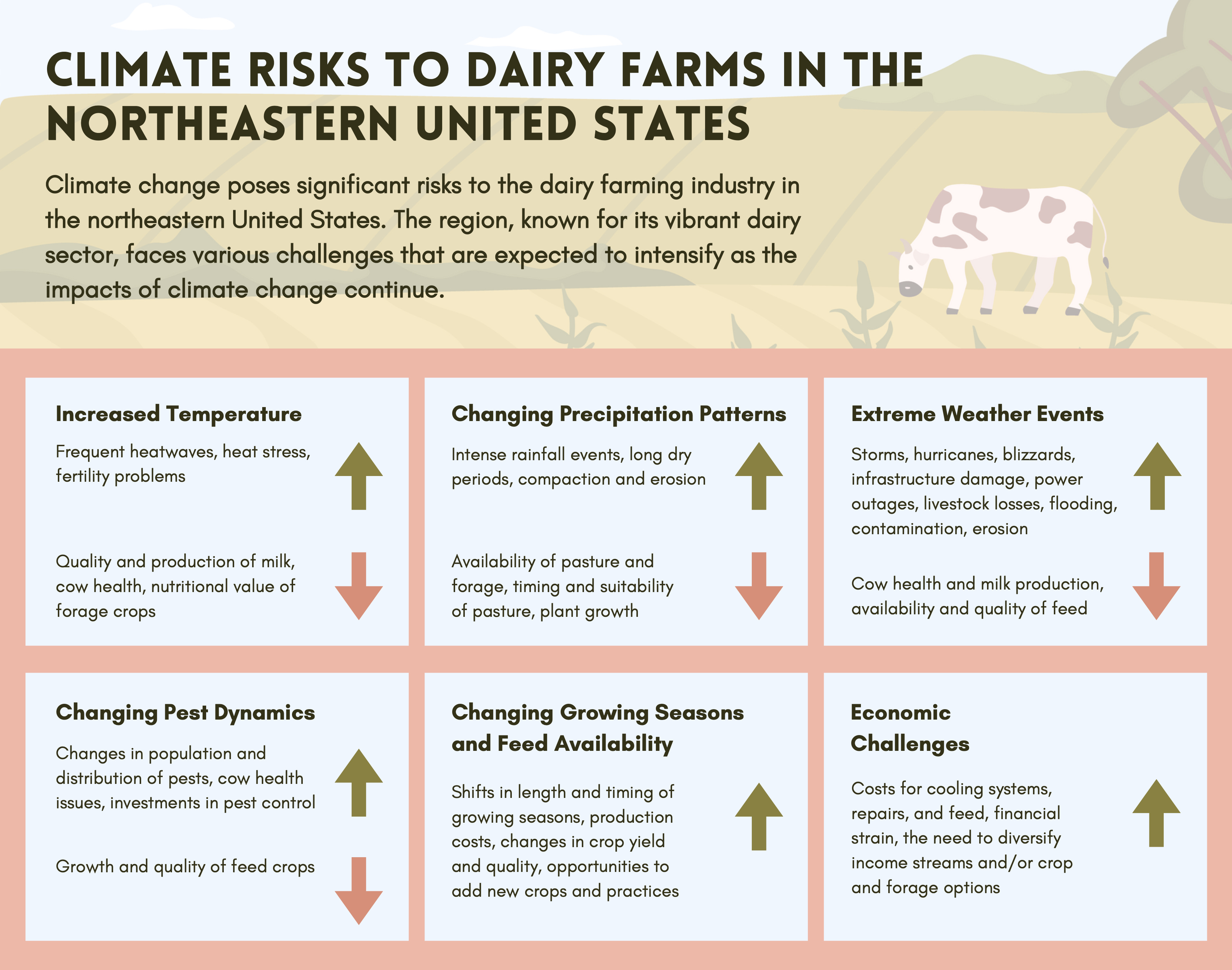 Here’s an example of how dairy farms in the Northeast US are experiencing increased climate risk, courtesy of the USDA’s Northeast Climate Hub. The visual learners among you can visit the link in the show notes for this information in graphic form.